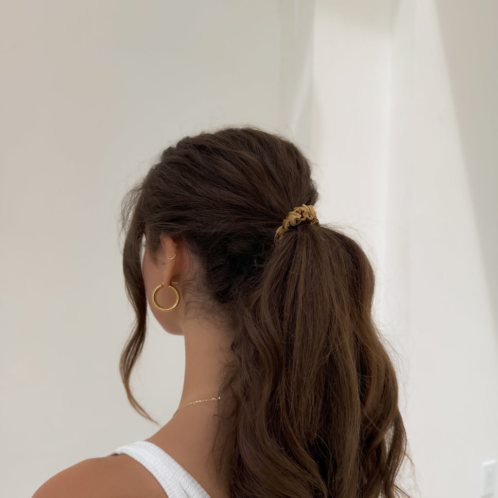 Indulge in timeless luxury with our Pure Silk Scrunchie, made from 100% organic mulberry silk. Thicker and more durable than regular silk, it offers a gentle, non-slip hold for all hair types, from fine strands to thick, textured hair. The premium durable elastic ensures a secure fit without easily stretching out, while the anti-breakage and anti-frizz properties of real silk protect your hair, preventing creasing, thinning, and pony-related headaches. Elevate your haircare routine with this elegant, long-lasting accessory.
